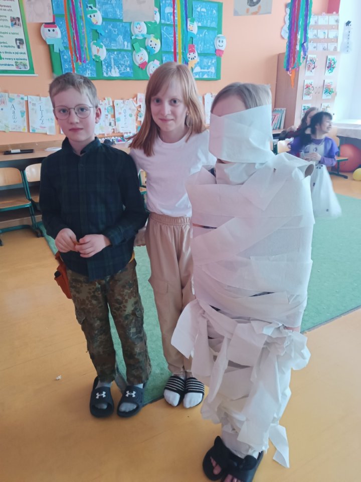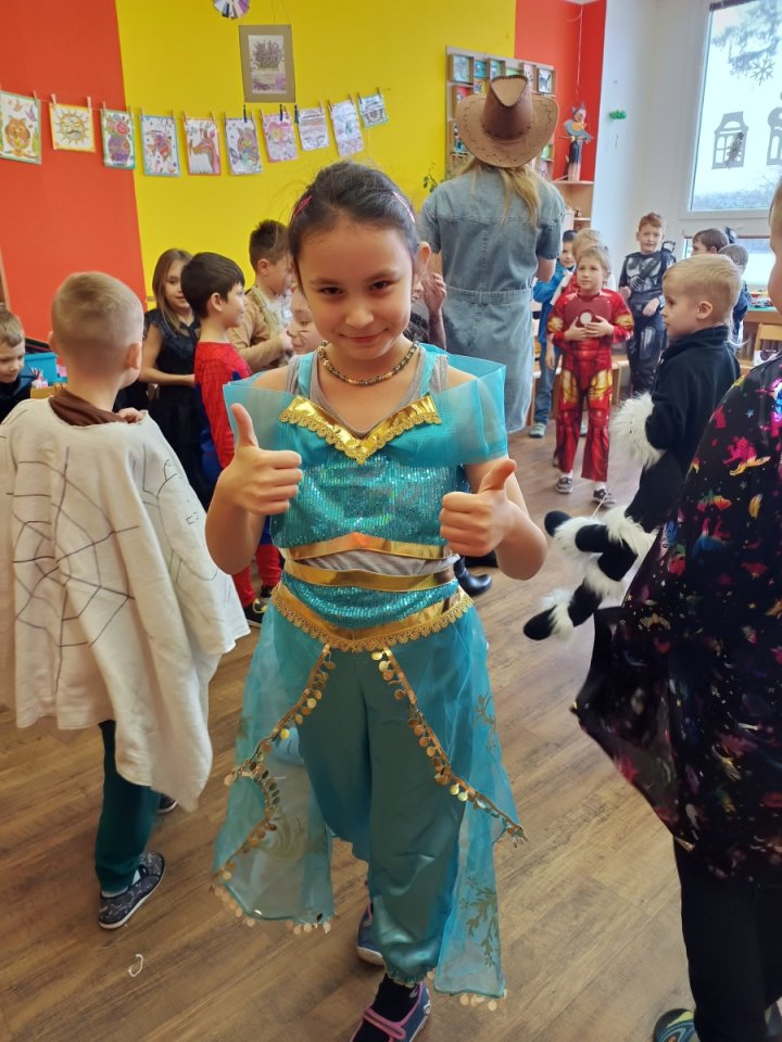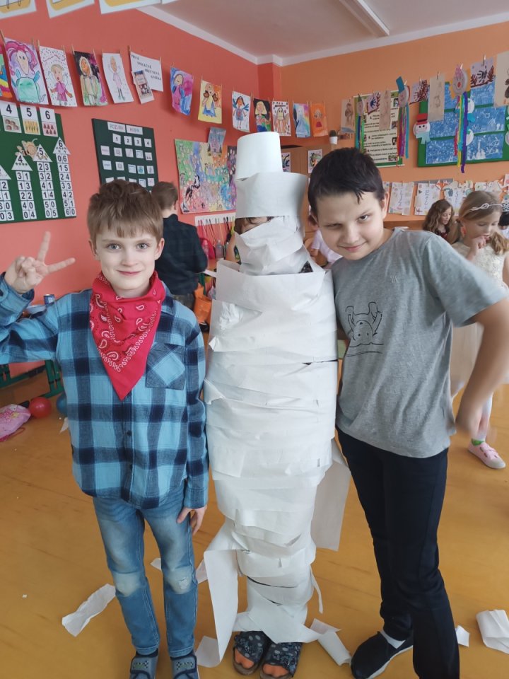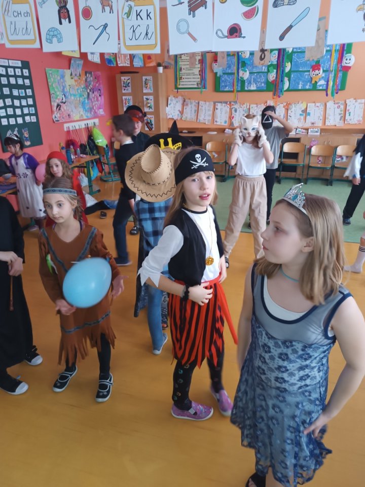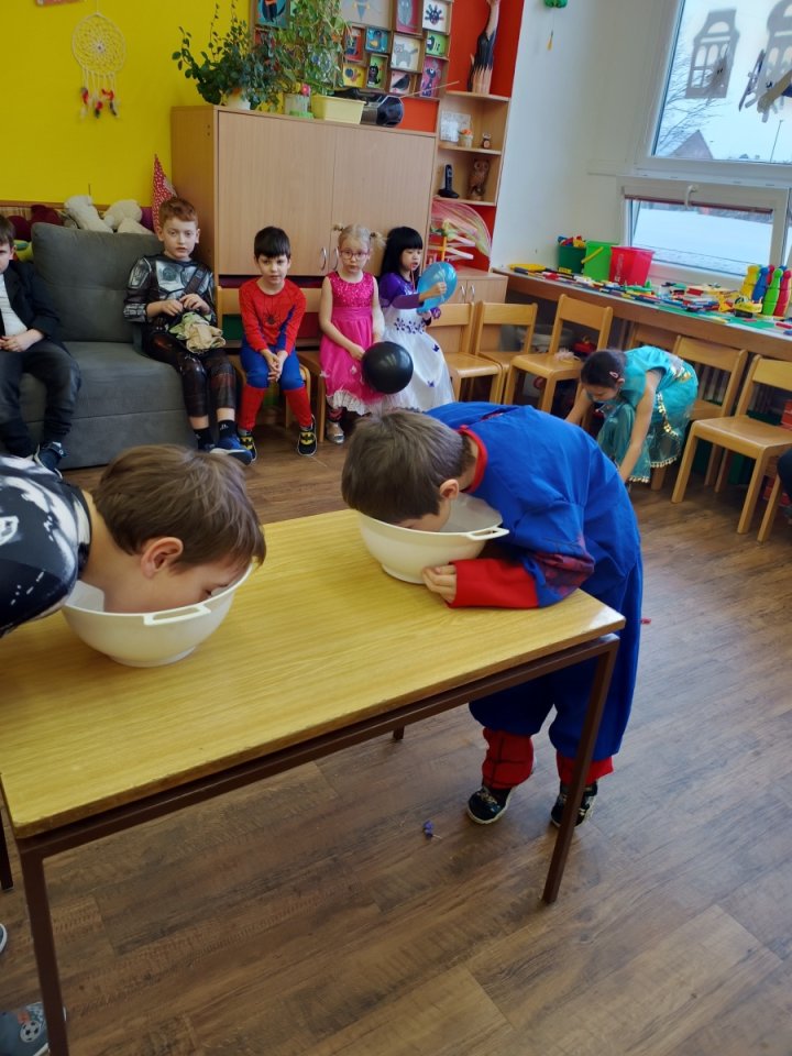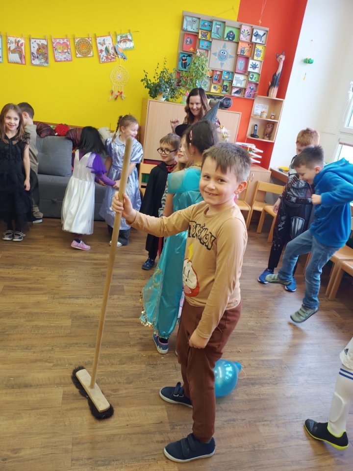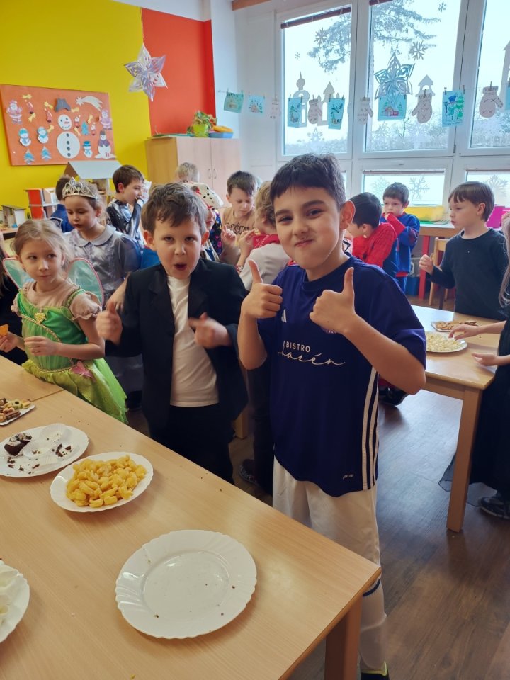 Ve školní družině jsme pro děti 13. února uspořádali maškarní karneval plný her, tvořivých aktivit a soutěží. Týden před samotným karnevalem jsme se s dětmi v odděleních pustili do vyrábění karnevalových masek. Děti si vyráběly papírové škrabošky svých oblíbených zvířátek. Když pak nastal den karnevalu, děti se převlékly do svých originálních kostýmů a poté již začal program představením masek a vláčkem na oblíbenou písničku Jede jede mašinka. Následně si již děti užívaly taneční soutěže, kde se nejen skvěle vyřádily, ale také prokázaly svou šikovnost a rytmické dovednosti. Největší úspěch měly tanečky s balonky, které všechny účastníky rozesmály a přitáhly jejich pozornost. Stejně oblíbené bylo i předávání klobouku nebo koštěte, kde děti prokázaly rychlost a smysl pro zábavu. Aby děti mohly načerpat energii na další zábavné aktivity, nechybělo chutné občerstvení, které nám připravili rodiče. Soutěživého ducha děti taktéž prokázaly při přenášení jablíček v ústech nebo nasávání lístečků brčkem, což bylo další částí našeho programu. Všechno má svůj konec, nastal čas se převléknout a děti odcházely domů spokojené, plné dojmů a každý si odnášel kornout s odměnou.